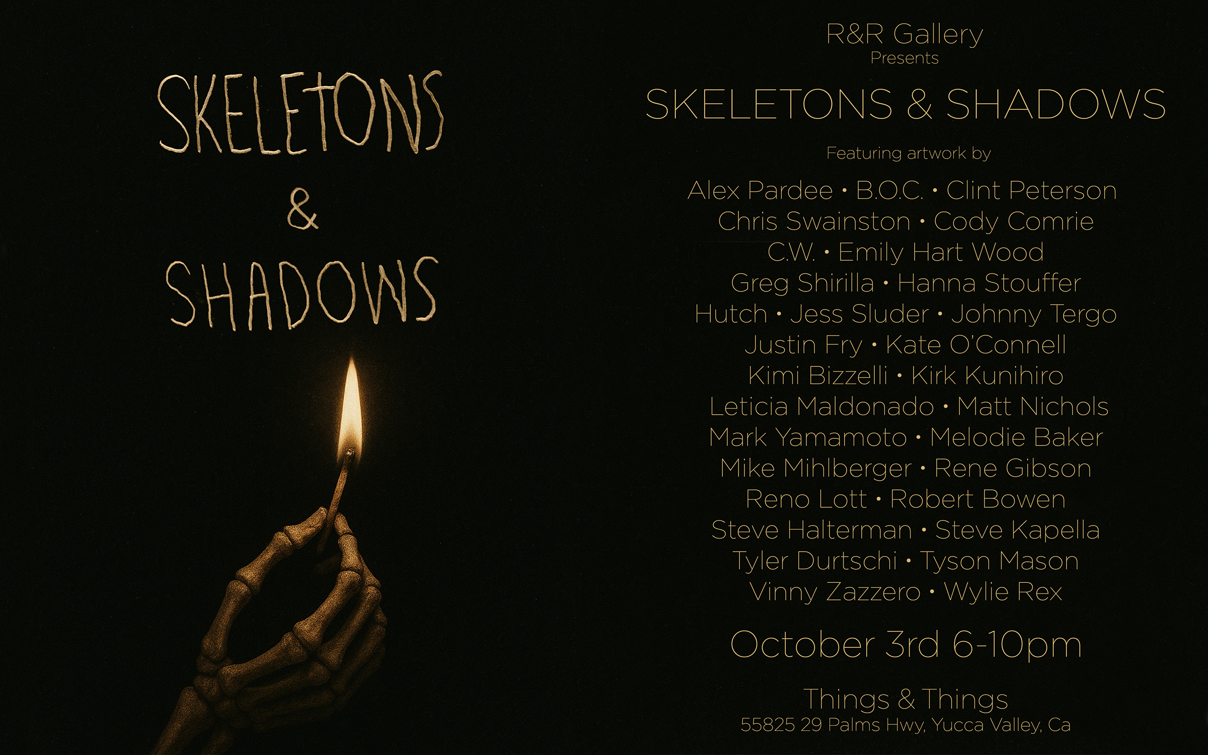 Alex Pardee • B.O.C. • Clint Peterson • Chris Swainston • Cody Comrie • C.W. • Emily Hart Wood • Greg Shirilla • Hanna StoufferHutch • Jess Sluder • Johnny Tergo • Justin Fry • Kate O’Connell • Kimi Bizzelli • Kirk Kunihiro • Leticia Maldonado • Matt Nichols • Mark Yamamoto • Melodie Baker • Mike Mihlberger • Rene Gibson • Reno Lott • Robert Bowen • Steve Halterman • Steve Kapella • Tyler Durtschi • Tyson Mason • Vinny Zazzero • Wylie Rex